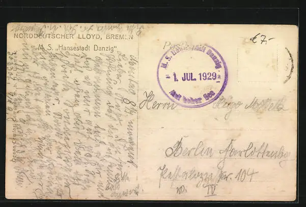 AK Nordeutscher Lloyd Bremen, Passagierschiff MS Hansestadt Danzig
