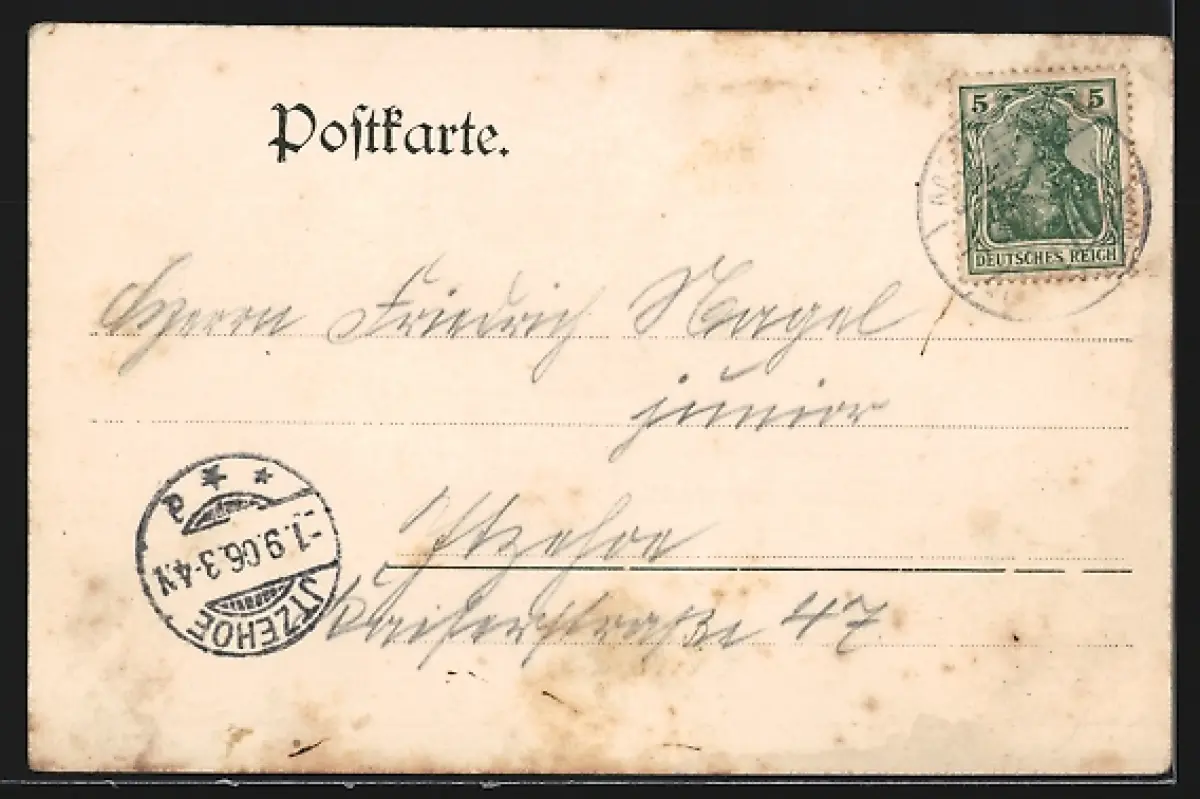 alte Ansichtskarte, gelaufen 1906, Eckknicke oben, guter Zustand