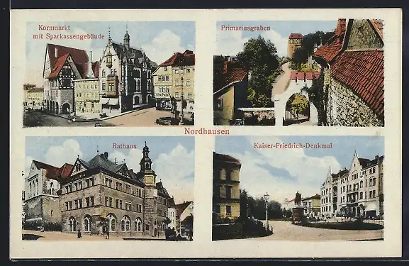 AK Nordhausen / Harz, Rathaus, Kaiser-Friedrich-Denkmal, Primariusgraben