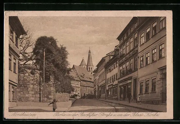 AK Nordhausen, Partie in der Barfüsser-Strasse an der Blasi-Kirche
