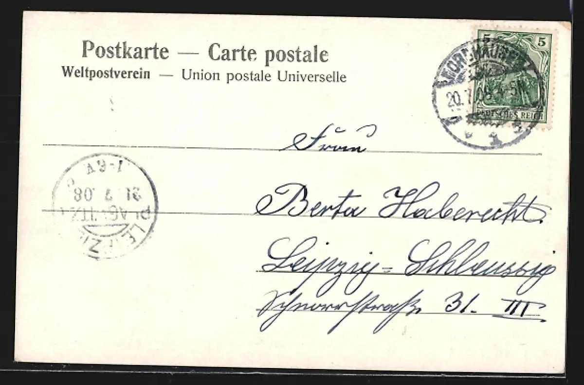 alte Ansichtskarte, gelaufen 1908, guter Zustand