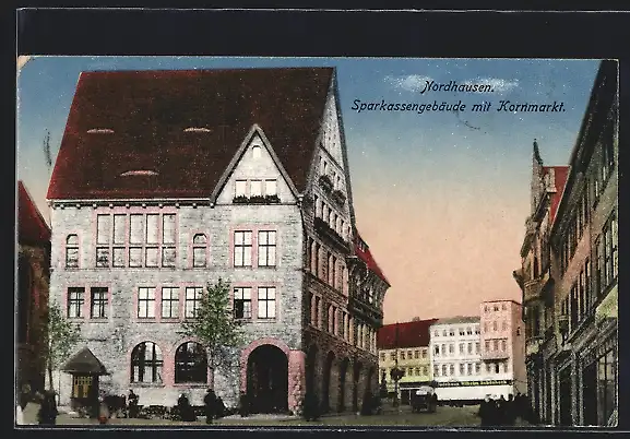 AK Nordhausen, Sparkassengebäude mit Kornmarkt