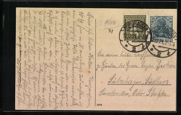 alte Ansichtskarte, gelaufen 1921, Einriss oben mittig, guter Zustand