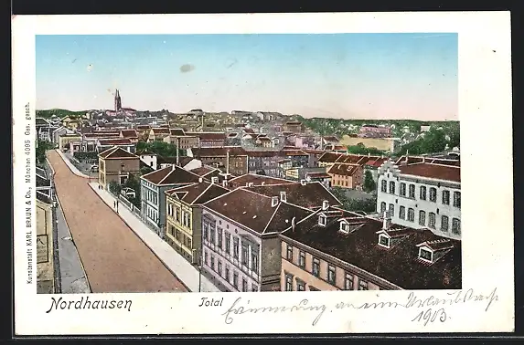 AK Nordhausen, Totalansicht mit Strassenpartie