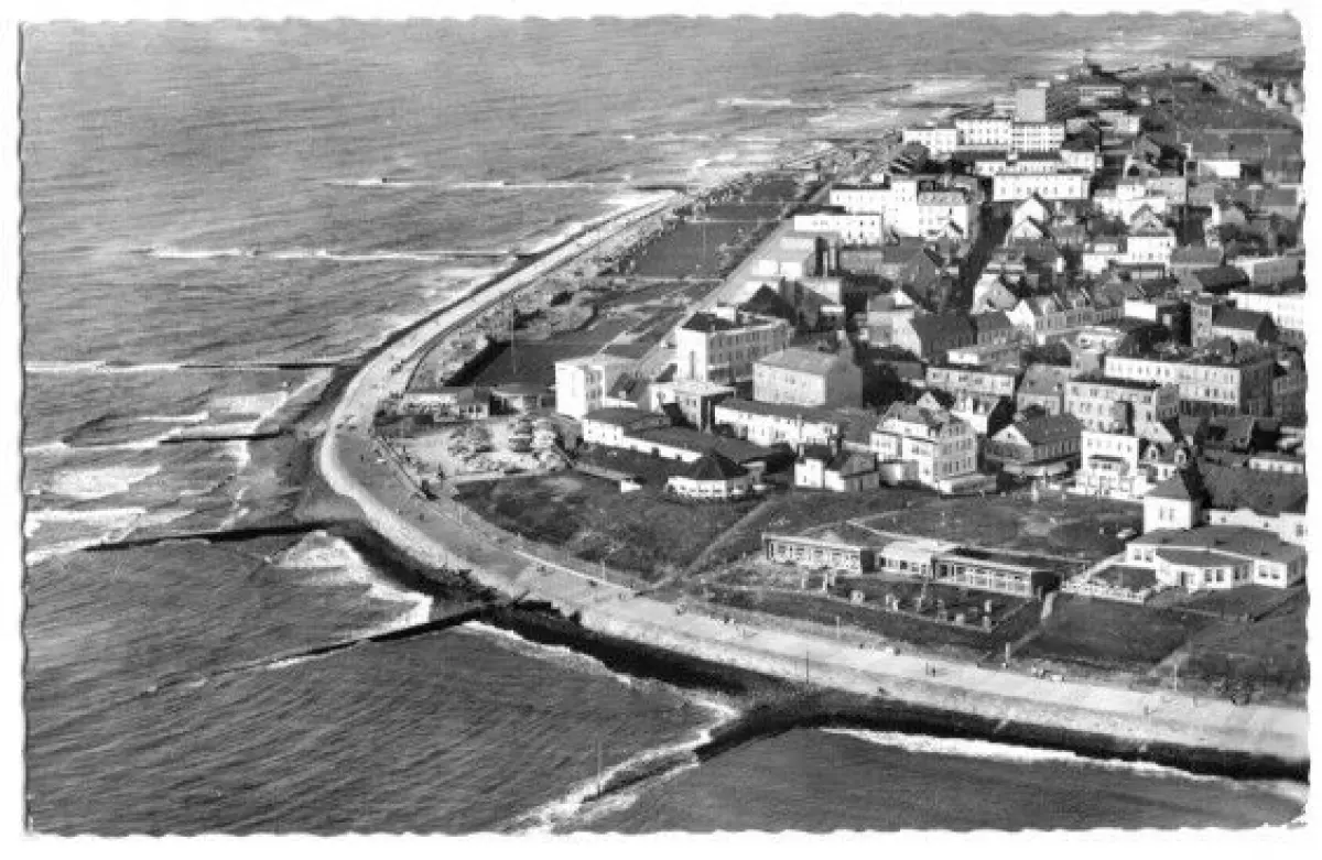 Ansichtskarte Nordseebad Norderney Luftbild Erhaltung II, Beförderungsspuren, Marke entfernt postalisch gelaufen, gestempelt: 9.5.64