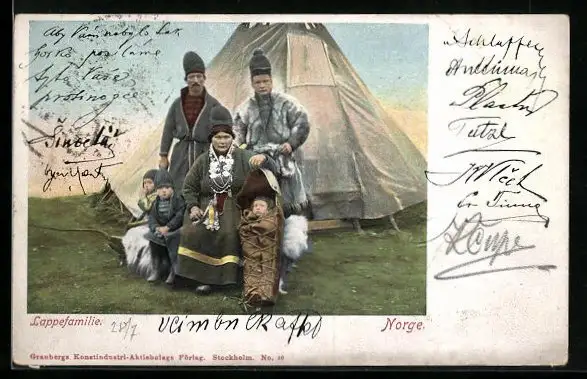 AK Norge, Lappenfamilie vor ihrem Zelt