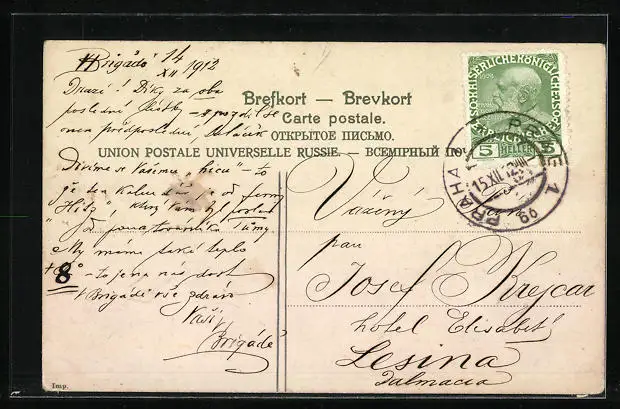 gelaufen 1912, Eckknick re. oben, Bugspur re. oben, guter Zustand