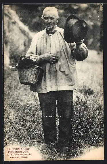 AK Normandie, Älterer Mann mit Tabakspfeife