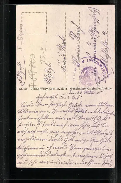 alte Ansichtskarte, gelaufen als Feldpost 1915, guter Zustand