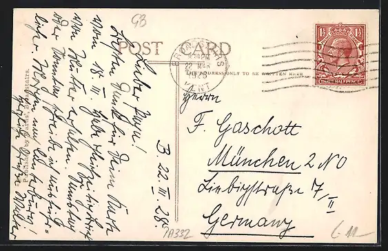 alte Ansichtskarte, gelaufen 1928, Stempelspur, guter Zustand