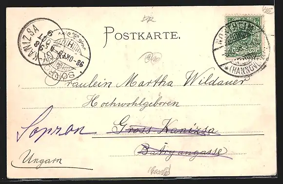 alte Ansichtskarte, gelaufen 1898, guter Zustand