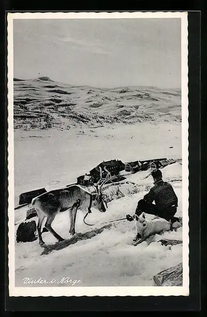 AK Norweger mit Rentier und Hund