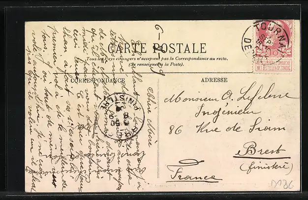 Personenbezogene Daten auf der Rückseite der Karte wurden durch blauen Textmarker unkenntlich gemacht. Die blauen Stellen sind auf die Vorderseite durchgeweicht und wirken sich negativ auf das Postkartenfoto aus