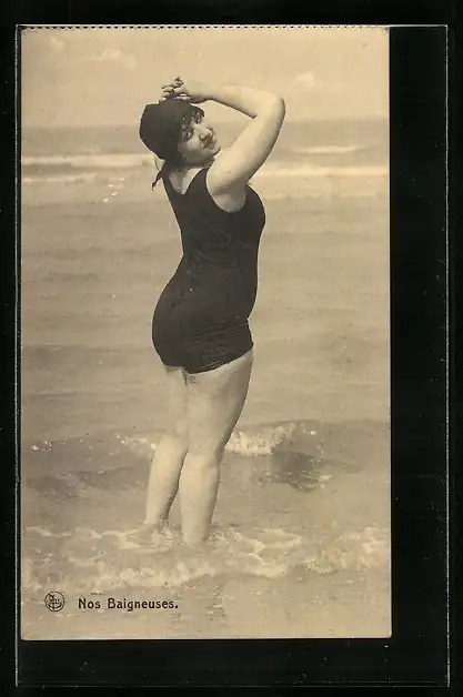 AK Nos Baigneuses, Grazie posiert in Badeanzügen im Meer