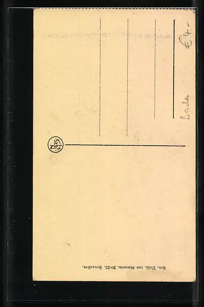 Personenbezogene Daten auf der Rückseite der Karte wurden durch blauen Textmarker unkenntlich gemacht. Die blauen Stellen sind auf die Vorderseite durchgeweicht und wirken sich negativ auf das Postkartenfoto aus