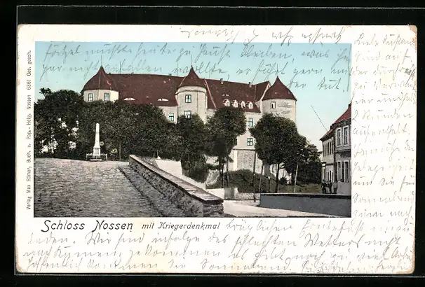 AK Nossen, Schloss mit Kriegerdenkmal