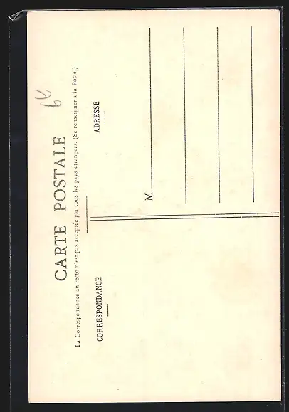 Personenbezogene Daten auf der Rückseite der Karte wurden durch blauen Textmarker unkenntlich gemacht. Die blauen Stellen sind auf die Vorderseite durchgeweicht und wirken sich negativ auf das Postkartenfoto aus