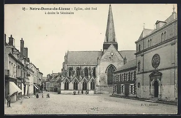AK Notre-Dame-de-Liesse, Église, côté Sud, à droite le Séminaire