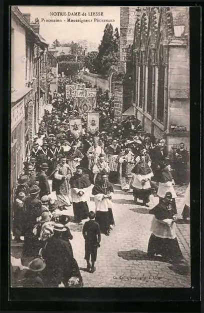 AK Notre-Dame-de-Liesse, Procession, Monseigneur Péchenard