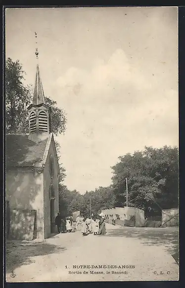 AK Notre-Dame-des-Anges, Sortie de messe le samedi