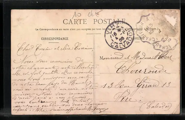 gelaufen 1905, Briefmarke entfernt, Eckknick unten li., Stempelspur, guter Zustand