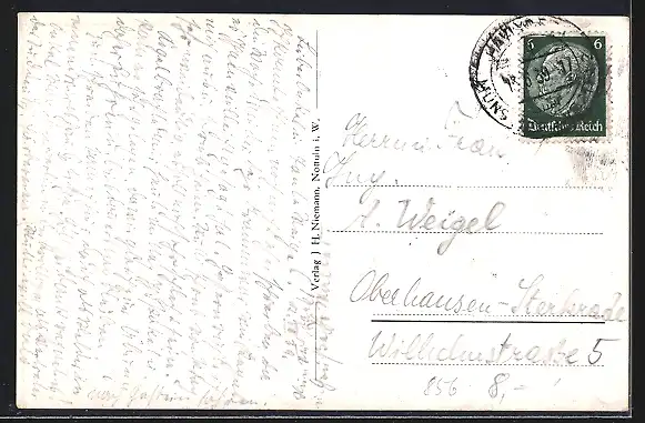 alte Ansichtskarte, gelaufen 1939, Stempelspur, Eckknick li. oben, guter Zustand