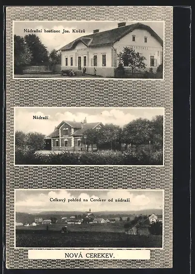 AK Nová Cerekev, Nádrazni hostinec Jos. Knezu, Nádrazi