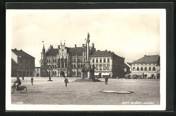 AK Nový Bydzov, Namesti, Marktplatz mit Denkmal