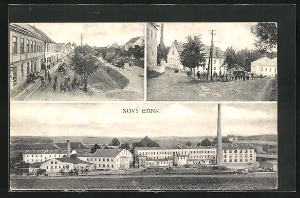 AK Novy Etink, Fabrik, Strassenpartie aus der Vogelschau