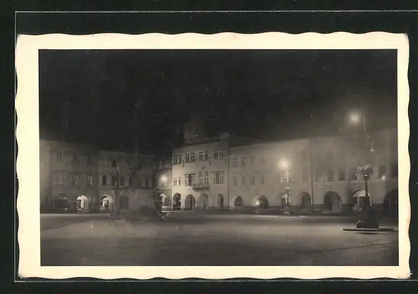 AK Nový Jicín, Stadtplatz und Mariensäule bei Nacht