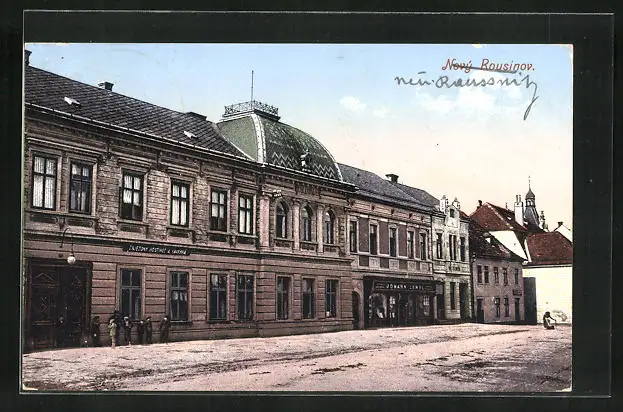 AK Novy Rousinov, Strassenpartie mit Geschäft