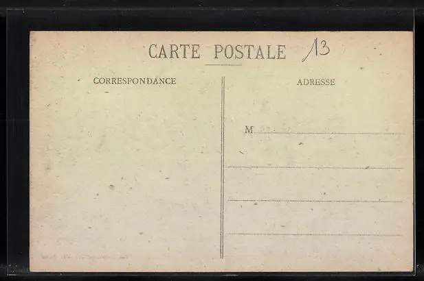 Personenbezogene Daten auf der Rückseite der Karte wurden durch blauen Textmarker unkenntlich gemacht. Die blauen Stellen sind auf die Vorderseite durchgeweicht und wirken sich negativ auf das Postkartenfoto aus