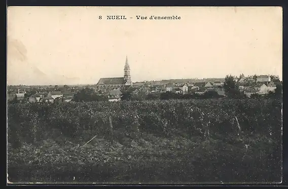 AK Nueil, Vue d`ensemble du village et de l`église