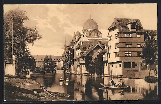 AK Nürnberg, Blick von der Museumsbrück zur Synagoge