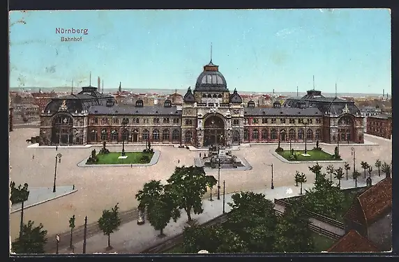 AK Nürnberg, Denkmal vor dem Bahnhof