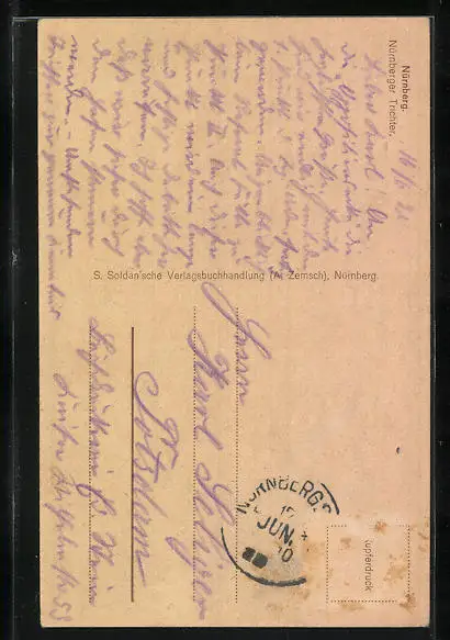 alte Ansichtskarte, gelaufen, Briefmarke entfernt, rückseitig Oberflächenschaden, guter Zustand