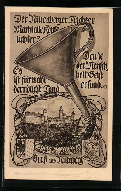 AK Nürnberg, Der Nürnberger Trichter, Totalansicht, Wappen