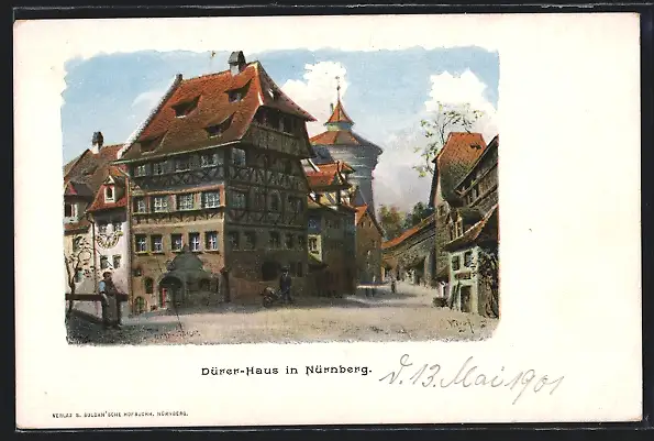 AK Nürnberg, Dürer-Haus mit Strassenpartie