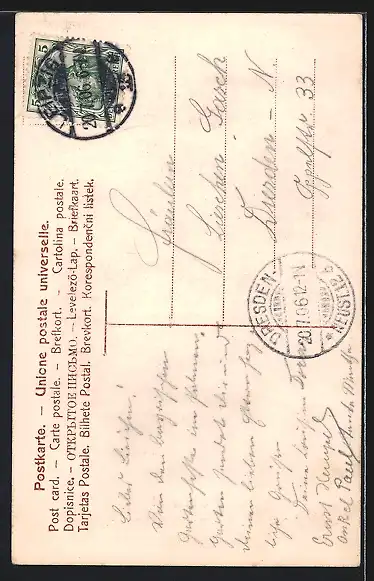 alte Ansichtskarte, gelaufen 1906, guter Zustand