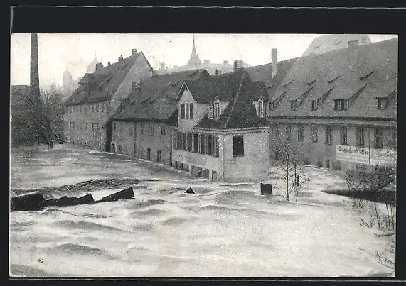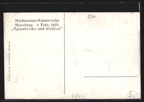 AK Nürnberg, Hochwasser-Katastrophe 05.02.1909, Agnesbrücke und Wildbad