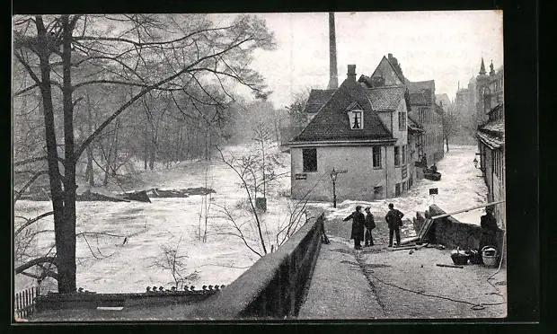 AK Nürnberg, Hochwasser-Katastrophe vom 05. Febr. 1909, die überflutete Agnesbrücke