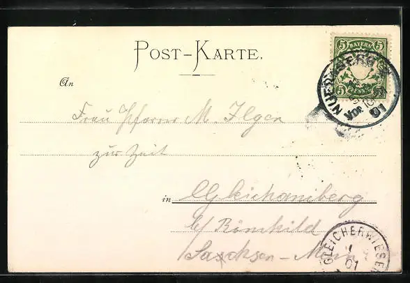 alte Ansichtskarte, gelaufen 1901, Stempelspur, guter Zustand
