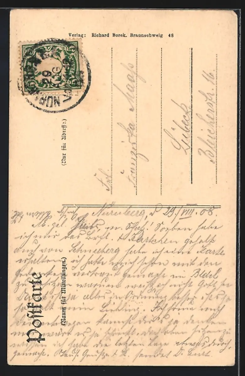 alte Ansichtskarte, gelaufen 1908, guter Zustand