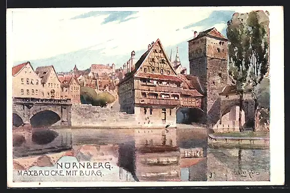 AK Nürnberg, Maxbrücke mit Burg