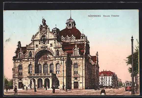 AK Nürnberg, Neues Theater mit Strassenbahn