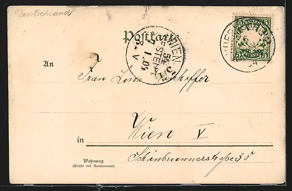 gelaufen 1904, Eckknicke oben, minimaler Einriss oben mittig, guter Zustand