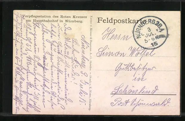 alte Ansichtskarte, gelaufen 1915 als Feldpost, Stempelspur, guter Zustand