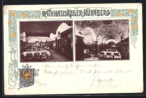 AK Nürnberg, Rathauskeller Innen mit Wappen