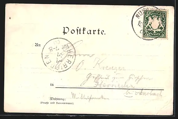 alte Ansichtskarte, gelaufen 1900, Eckknicke re. unten u. li., guter Zustand