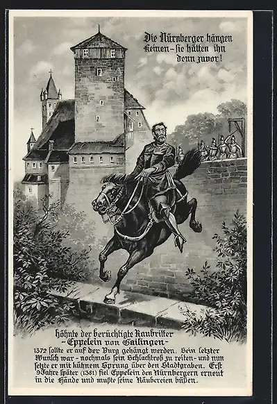 AK Nürnberg, Raubritter Eppelein von Gailingen flüchtet aus der Stadt